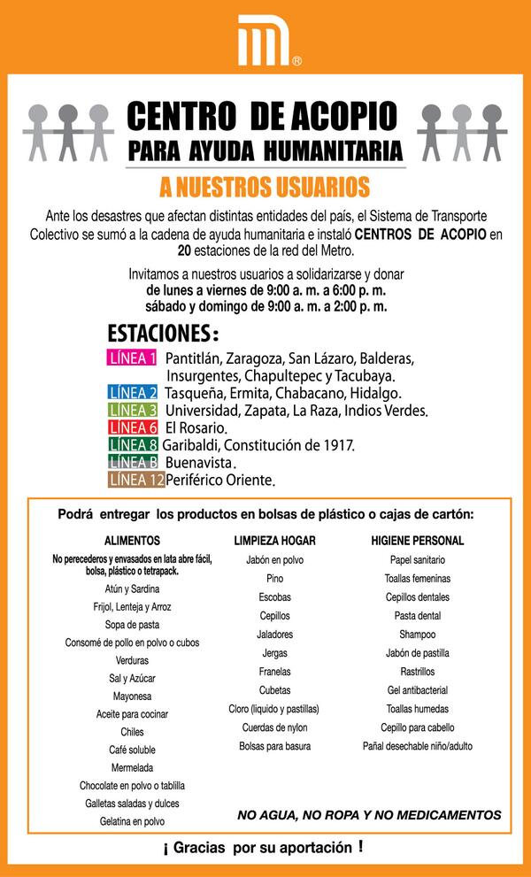 A todos nuestro usuarios les informamos las ubicaciones de los centros de acopio en el @STCMetroDFpic.twitter.com/adzGuJTg28