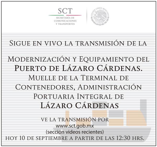 Sigue #EnVivo Modernización y Equipamiento del Puerto de Lázaro Cárdenas, 12:30 hrs. en: http://www.sct.gob.mx/ pic.twitter.com/3maHI64RTn