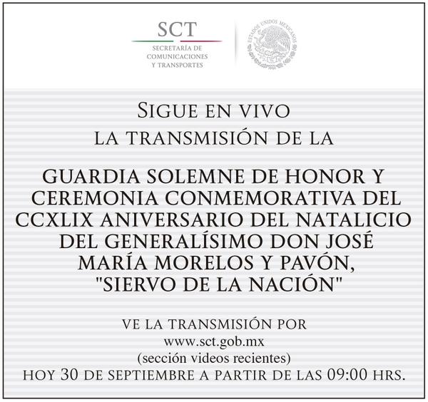Sigue #EnVivo la Guardia Solemne de Honor y Ceremonia Conmemorativa del Natalicio de José María Morelos y Pavónpic.twitter.com/Qr92ZzsuDm