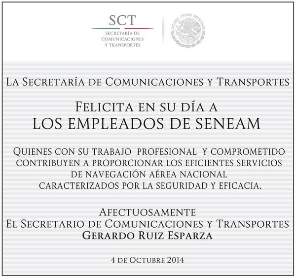“@SCT_mx: La @SCT_mx felicita en su día a los empleados del @seneam_sct: afectuosamente el Secretario @gruizesp pic.twitter.com/8AhyiovAF4”