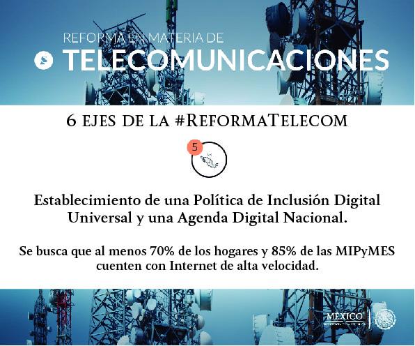 6 ejes de la #ReformaTelecom: fijar objetivos específicos para la cobertura universal de serviciospic.twitter.com/XHd7QJP2dE