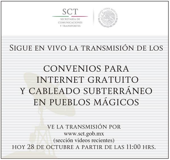 Sigue #EnVivo la transmisión de los convenios para internet gratuito y cableado subterráneo en Pueblos Mágicospic.twitter.com/j217lIEL8Q