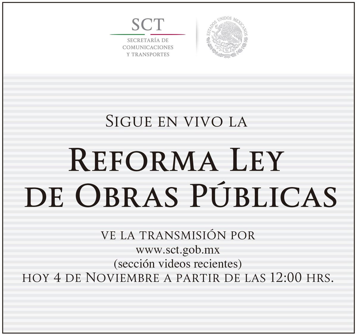 Sigue #EnVivo la Reforma Ley de Obras Públicas en http://sct.gob.mx  a partir de las 12 horaspic.twitter.com/4YTXF6ceDi