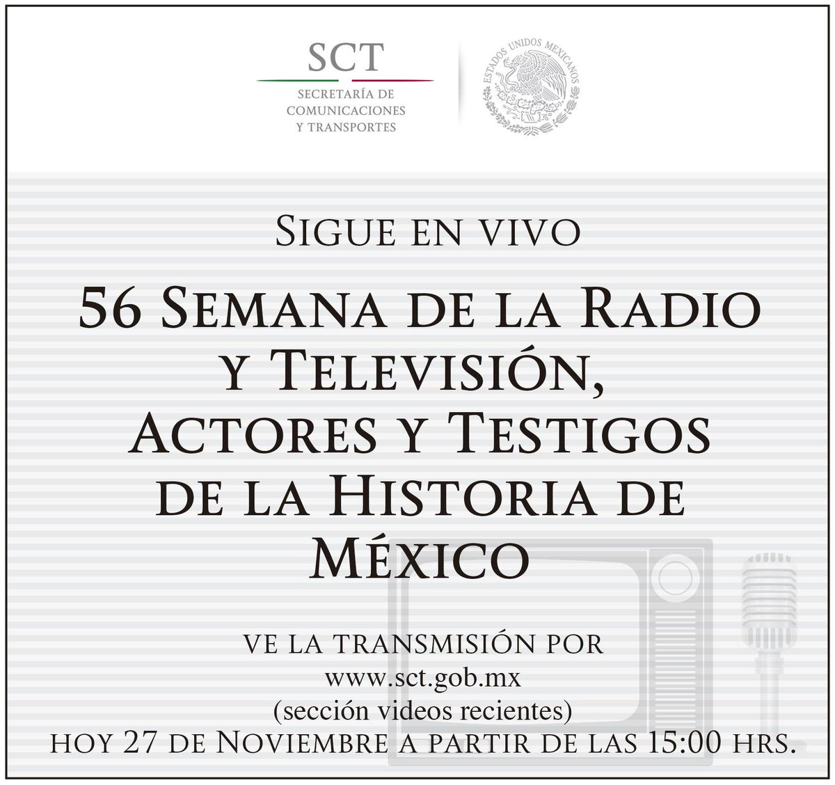 Sigue #EnVivo: 56 semana de la Radio y Televisión Actores y Testigos de la Historia de México http://sct.gob.mx pic.twitter.com/J4LPTklHHH