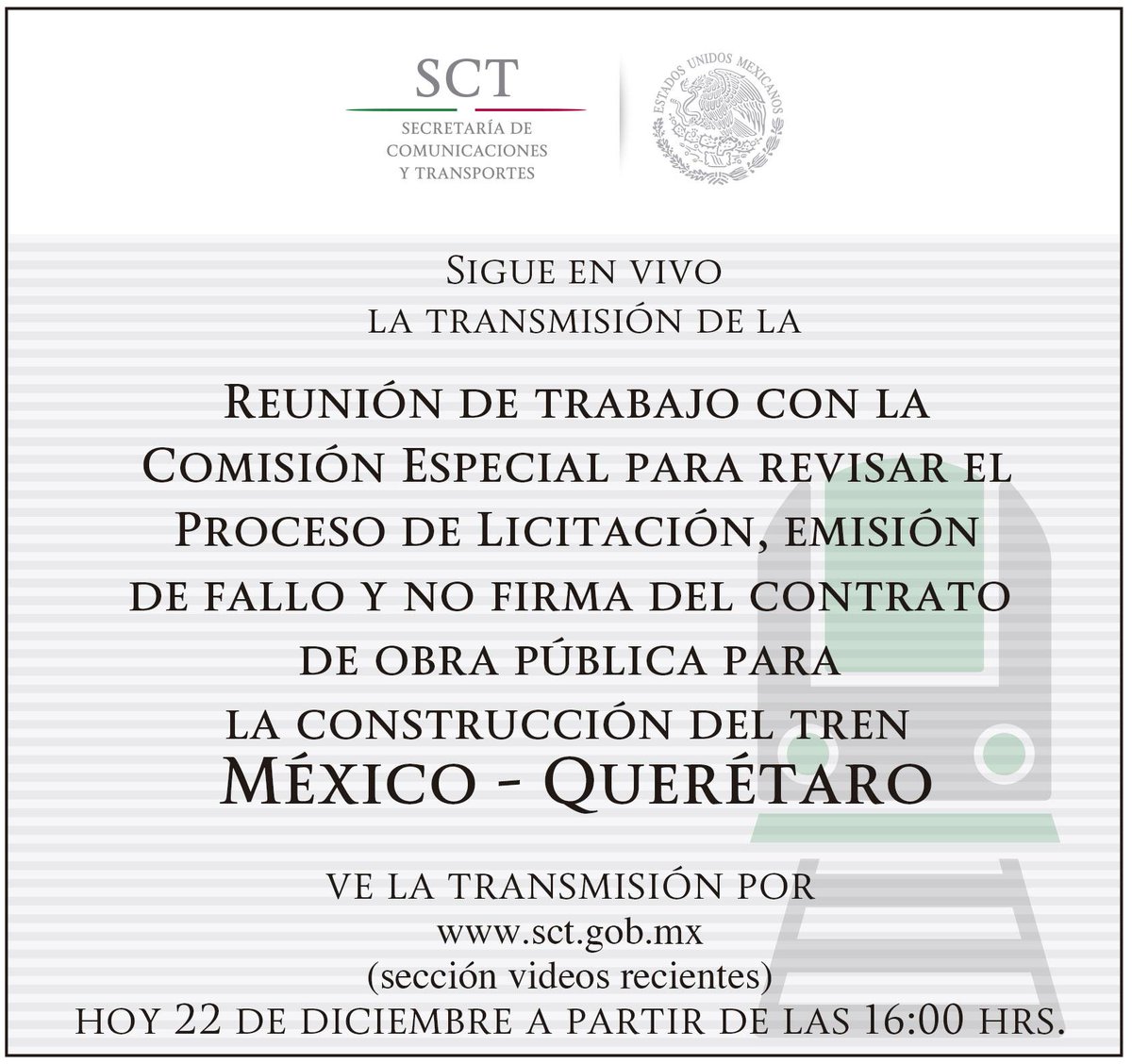 Secretaría de Comunicaciones y Transportes | http://Instagram.com/sct_mx  | http://facebook.com/SCTmx  🇲🇽🚃🚄🚆🚛🚊✈️⚓️🛰️📡🛣️