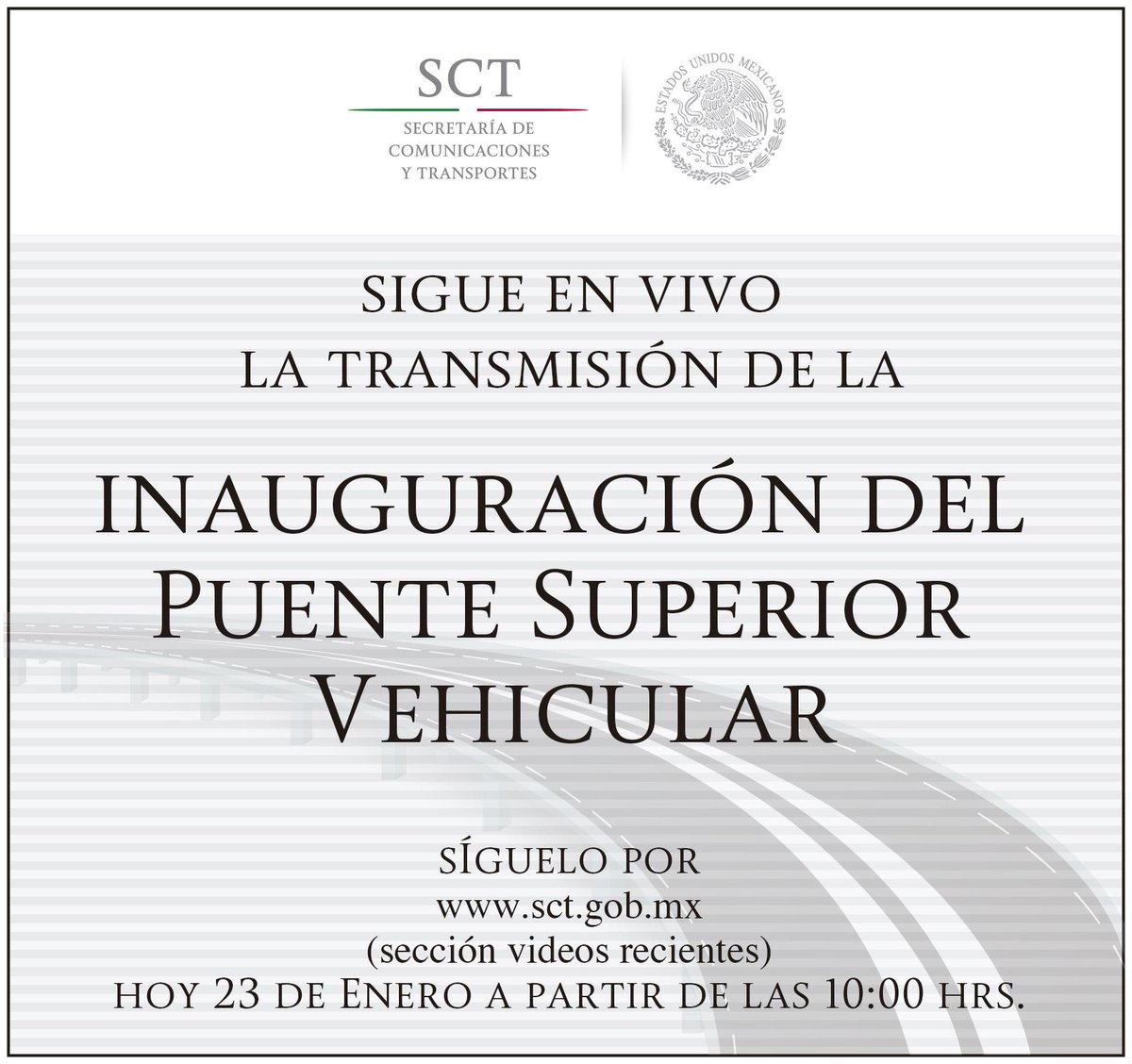 Sigue #EnVivo la inauguración del Puente Superior Vehicular en http://sct.gob.mx pic.twitter.com/IITZM0uMGi
