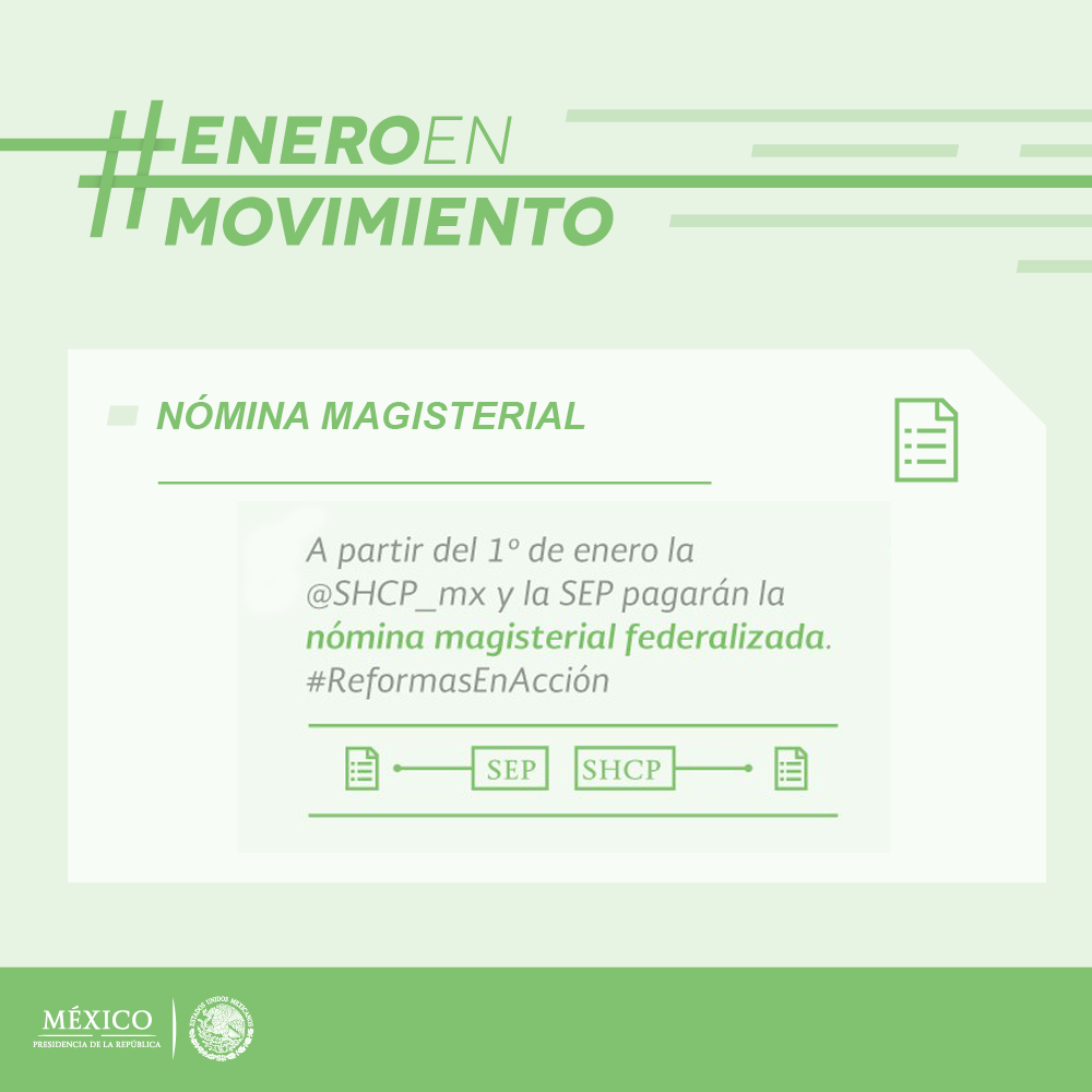 #EneroEnMovimiento: A partir de este año la @SHCP_mx y la @SEP_mx pagarán la Nómina Magisterial Federalizadapic.twitter.com/lTePnQEpAu