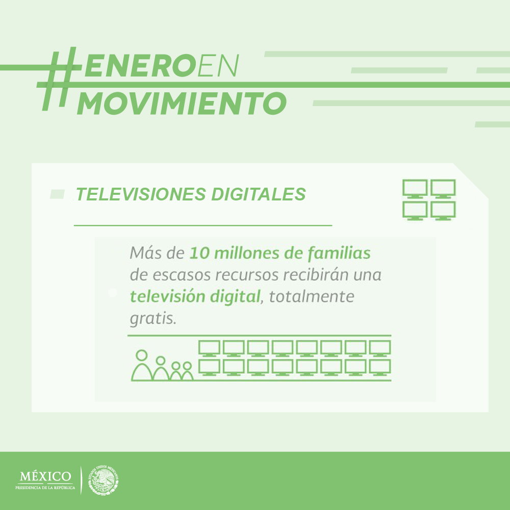 #EneroEnMovimiento: 10 millones de familias de escasos recursos recibirán una televisión digital gratis #TDTpic.twitter.com/Lu9hIDN4k1