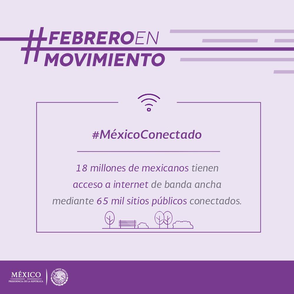 #FebreroEnMovimiento: #MéxicoConectado ha llevado internet a más de 65 mil sitios y espacios públicos en todo el paíspic.twitter.com/Bg4z4kNj0Z