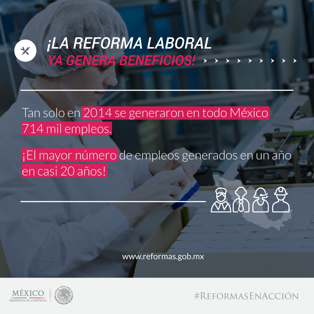 ¿Sabías que con la #ReformaLaboral se generaron 714 mil empleos en 2014? #ReformasEnAcción http://bit.ly/1Ff9Eny pic.twitter.com/5tBv3QMhvk