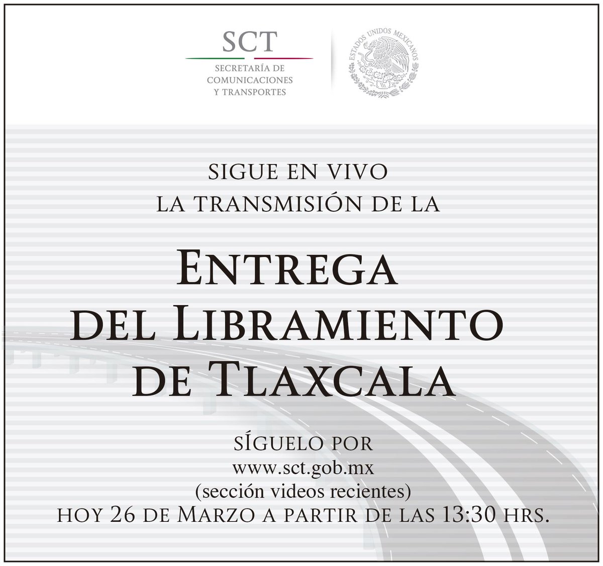Sigue #EnVivo la entrega del Libramiento de #Tlaxcala en nuestro portal http://sct.gob.mx pic.twitter.com/mKzuF8MSj9
