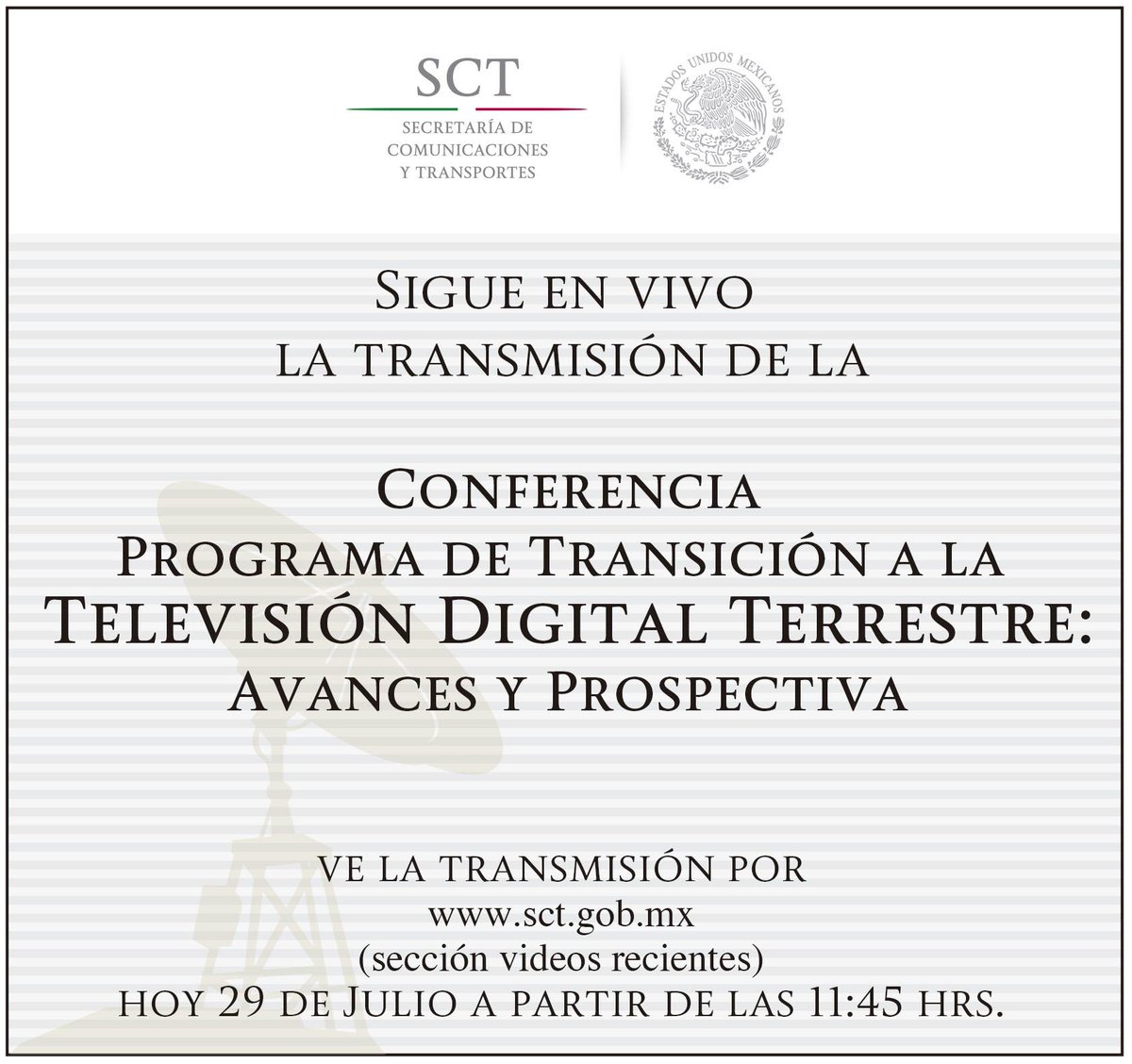 Sigue #EnVivo la conferencia de prensa del Programa de Transición a la #TDT en nuestro portal http://www.sct.gob.mx pic.twitter.com/COYNtRbBda