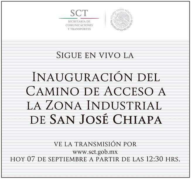 #EnVivo: Inauguración del Camino de acceso a la zona industrial de San José Chiapa #Puebla http://www.sct.gob.mx pic.twitter.com/AfV9ELM5i5