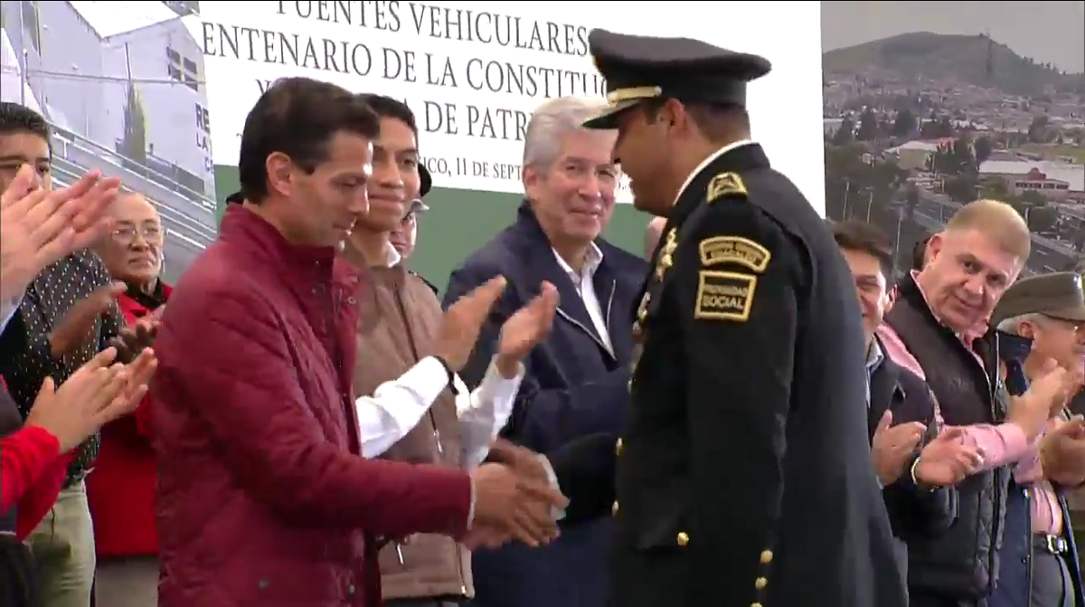 El Presidente @EPN entrega juegos de llaves de las patrullas a policías del #Edomex. http://sct.gob.mx pic.twitter.com/cN7kZUTOf4