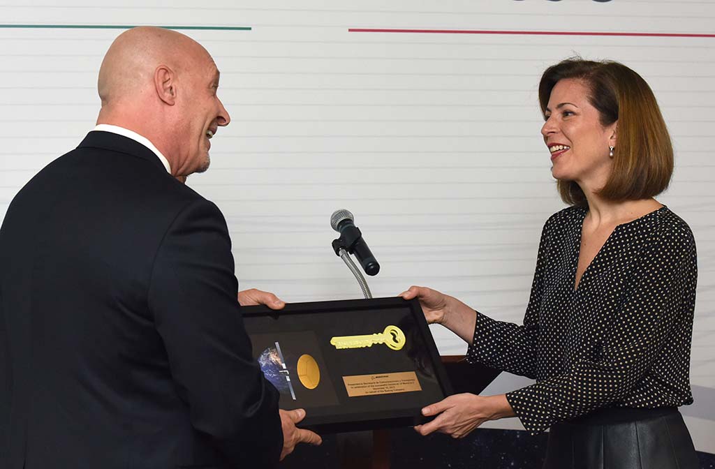 La Subsecretaria, @maspeb, recibió la "llave" simbólica del Satélite #Morelos3, por parte de la empresa Boeing.pic.twitter.com/hDlhhCKTD4