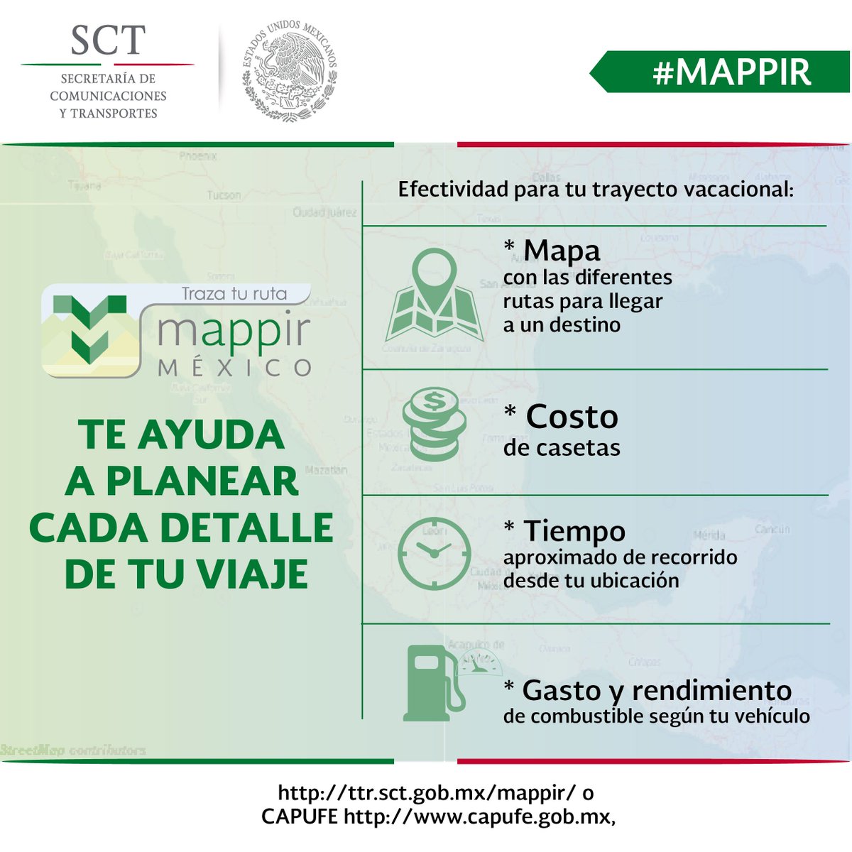 Descarga #Mappir en tu smartphone y #ViajaSeguro #EnTusVacaciones: http://ttr.sct.gob.mx/mappir/ pic.twitter.com/x4GRU1ywXR