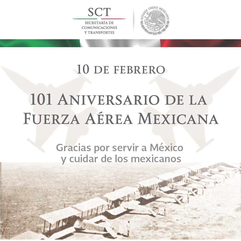 La #SCT felicita a la #FuerzaAéreaMexicana por sus 101 años de Honor, Valor y Lealtad.pic.twitter.com/6d4dhE599K