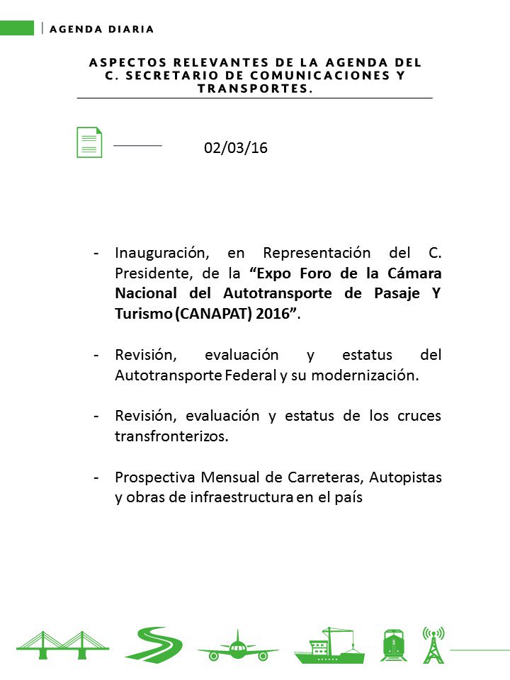 Secretaría de Comunicaciones y Transportes | http://Instagram.com/sct_mx  | http://facebook.com/SCTmx  🇲🇽🚃🚄🚆🚛🚊✈️⚓️🛰️📡🛣️