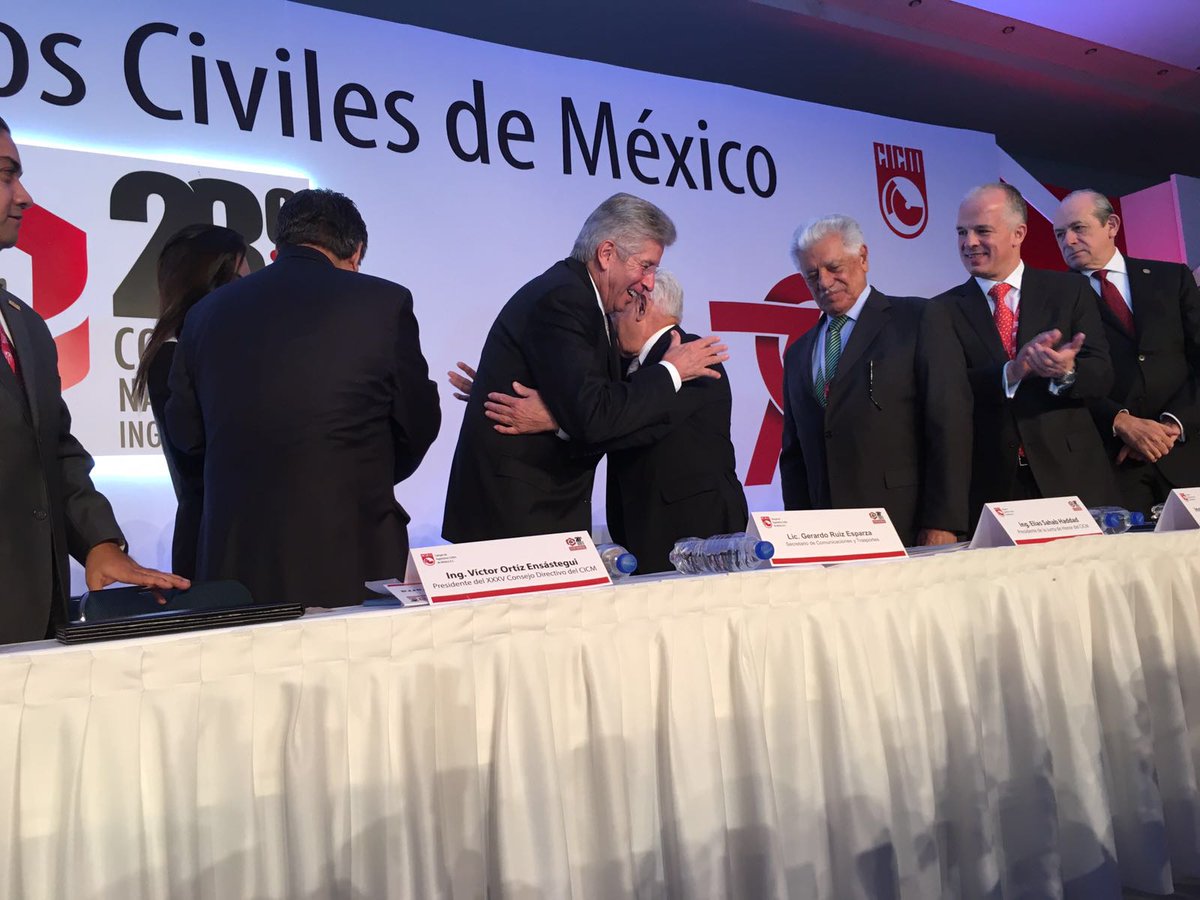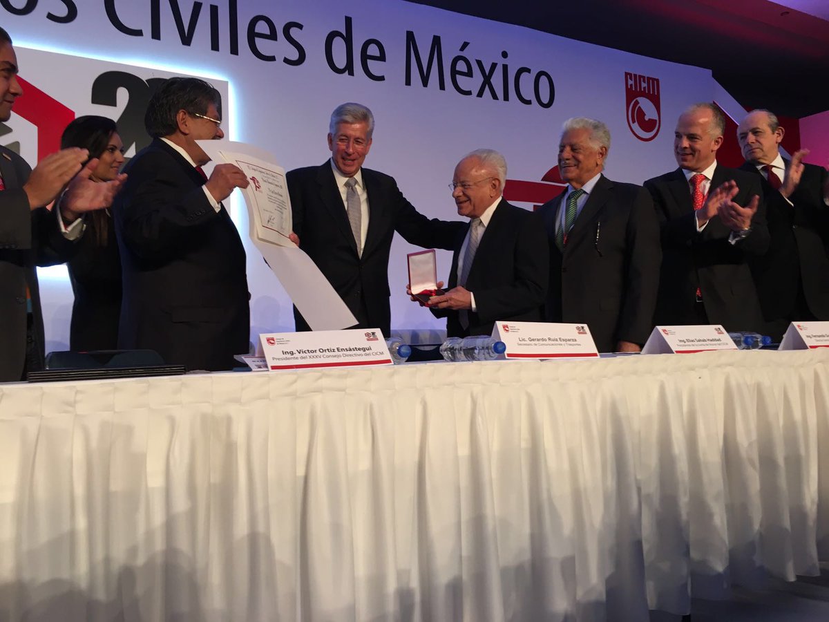 En el #28CNIC, el Srio. @gruizesp entregó el Premio Nacional de Ingeniería Civil 2015 al Dr. Luis Esteva Marabotopic.twitter.com/QmneHGfyKh
