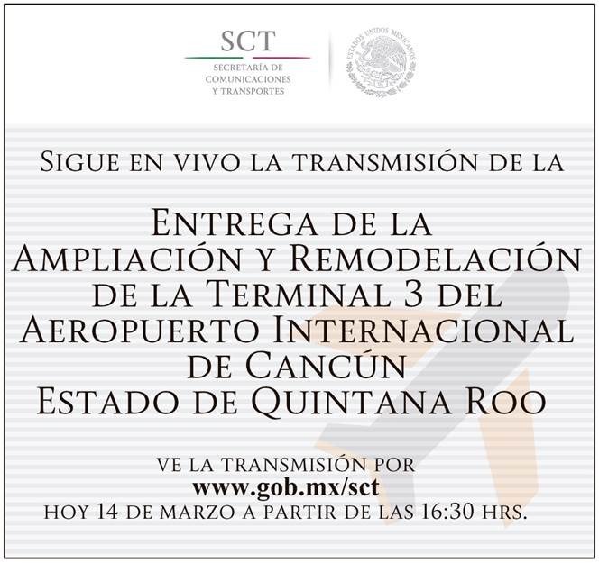 Sigue #EnVivo la inauguración de la ampliación de la Terminal 3 del @Cancun_Airportpic.twitter.com/j5xx1Z3tCi