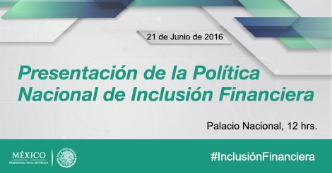 #AGENDA. No te pierdas la Presentación de la Política Nacional de #InclusiónFinanciera por: http://www.gob.mx/presidencia pic.twitter.com/3acqnMNoe2