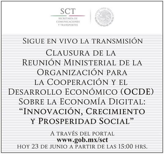 Sigue #EnVivo desde #Cancún la clausura de la #OECDdigitalMX: http://www.gob.mx/sct pic.twitter.com/hkW30sffyM