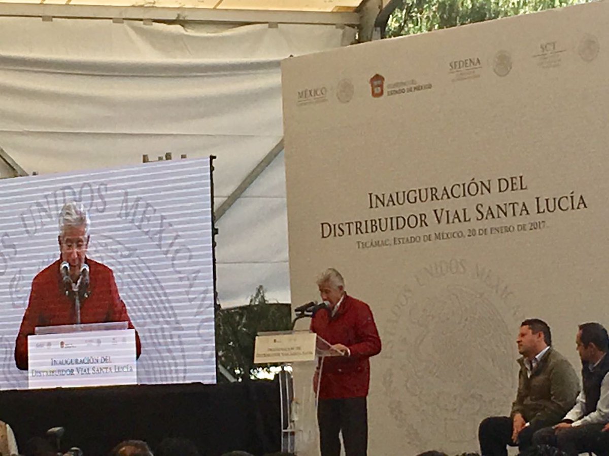 "Esta obra brinda acceso directo a la base aérea de Santa Lucía, facilitando la labor de ntro. Ejército y Fuerza Aérea Mexicana": @gruizesppic.twitter.com/4JI9GESRwe
