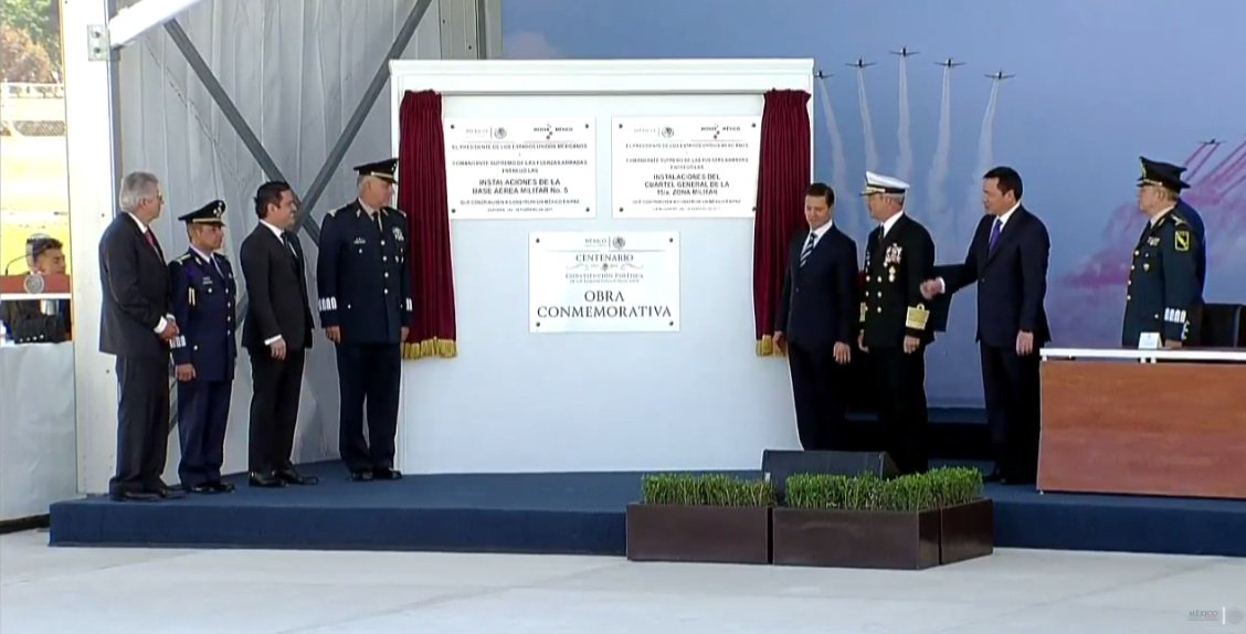 #ENVIVO @gruizesp acompaña a @EPN en la develación de la placa inaugural de Instalaciones de la Base Aérea Militar No. 5.pic.twitter.com/YBDn7dMXwY