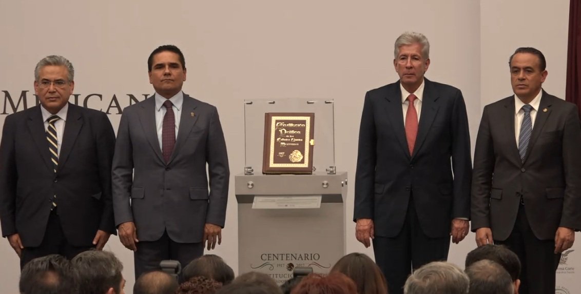 El momento de la guardia de honor a un costado del Facsimilar de nuestra #Constitucion1917 🇲🇽pic.twitter.com/0mKUQRwMJS
