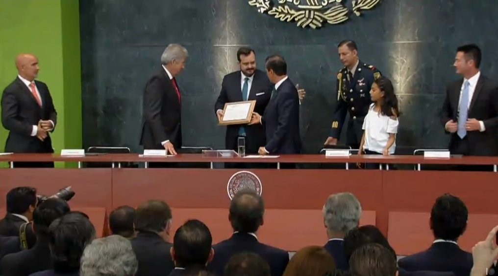 .@mariodelacruz, Presidente Nacional de la @CANIETI entrega reconocimiento al Presidente @EPN 🇲🇽📸pic.twitter.com/1f8zMR4J1j