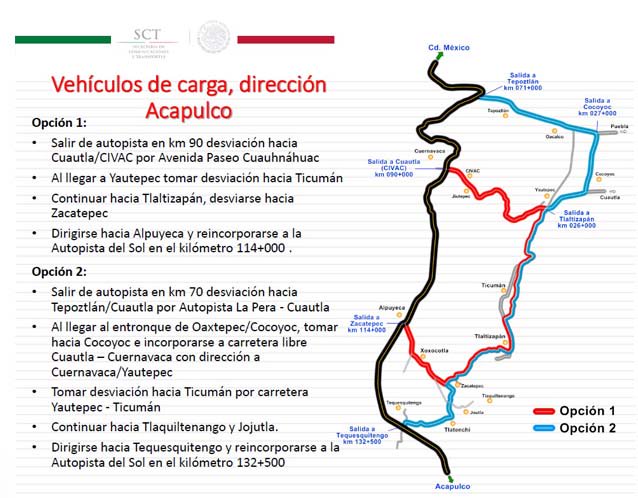 Del 14 al 17 de julio, éstas son las rutas alternas de la carretera México-Acapulco-México para vehículos de carga: 👉http://ow.ly/OTzf30dEovT pic.twitter.com/1sdeyknr8O