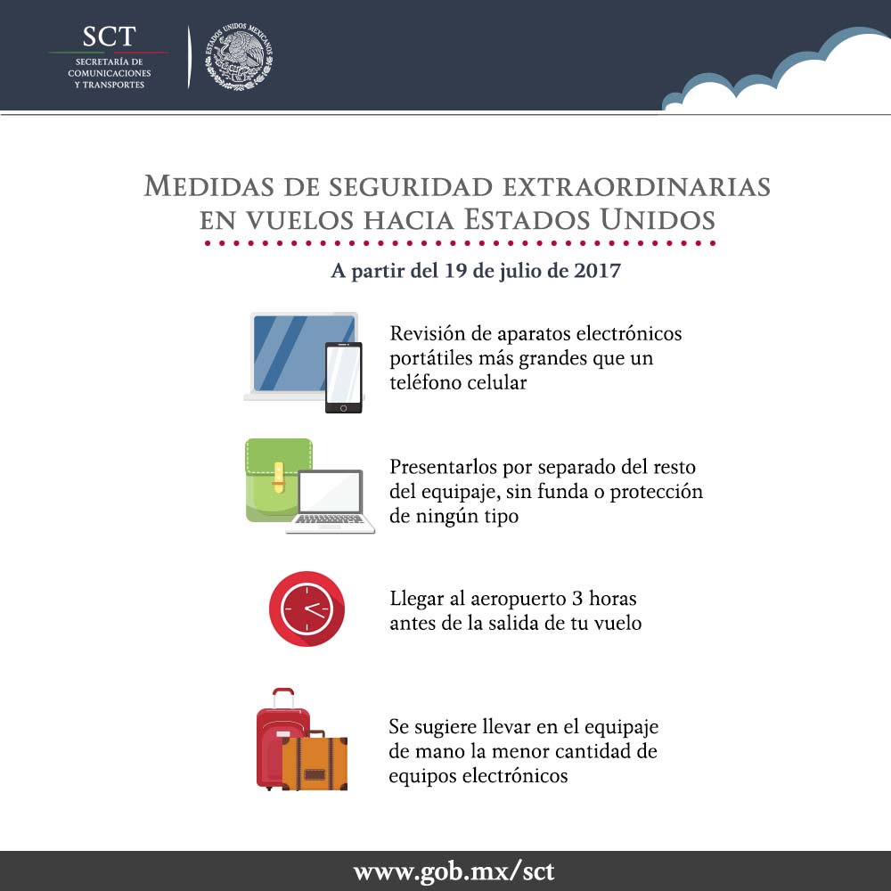 Conoce las medidas que aplican las líneas aéreas en vuelos de #México a #EU. http://bit.ly/2vkFsXZ pic.twitter.com/tymqmLQclk