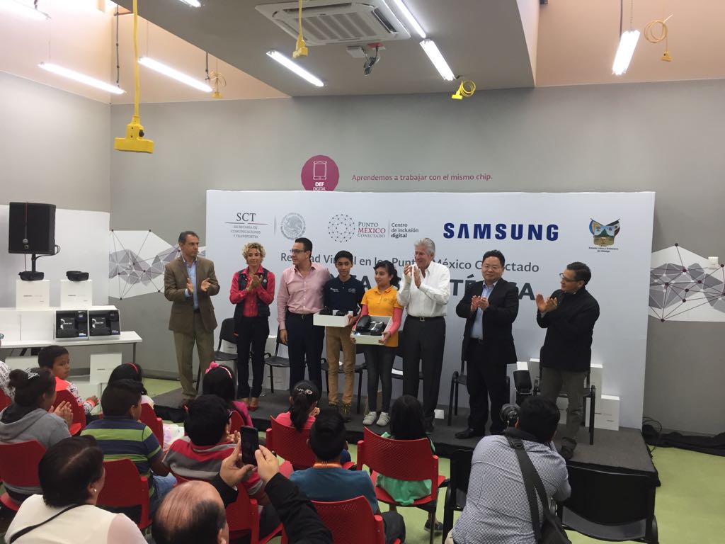 Los niños ganadores de robótica recibieron simbólicamente los equipos donados por @SamsungMexico a los #PuntosMexicoConectado