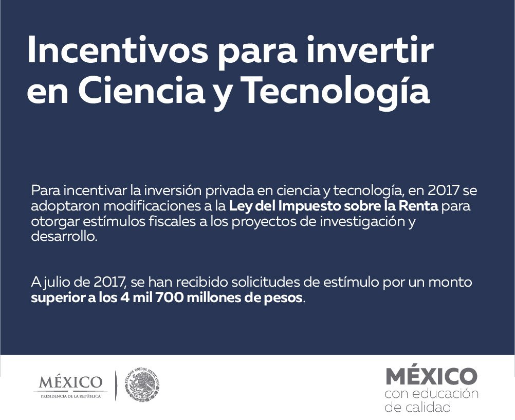 Se han creado Estímulos Fiscales para el Desarrollo de Ciencia y Tecnología. #5toInformepic.twitter.com/nbvNoeLovX