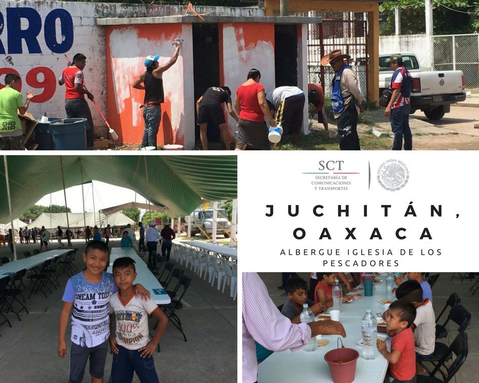 El PET de la SCT instaló un comedor comunitario en el albergue de la Iglesia de Los Pescadores en la sección 7 de Juchitán, Oaxacapic.twitter.com/mkFlQVQX62