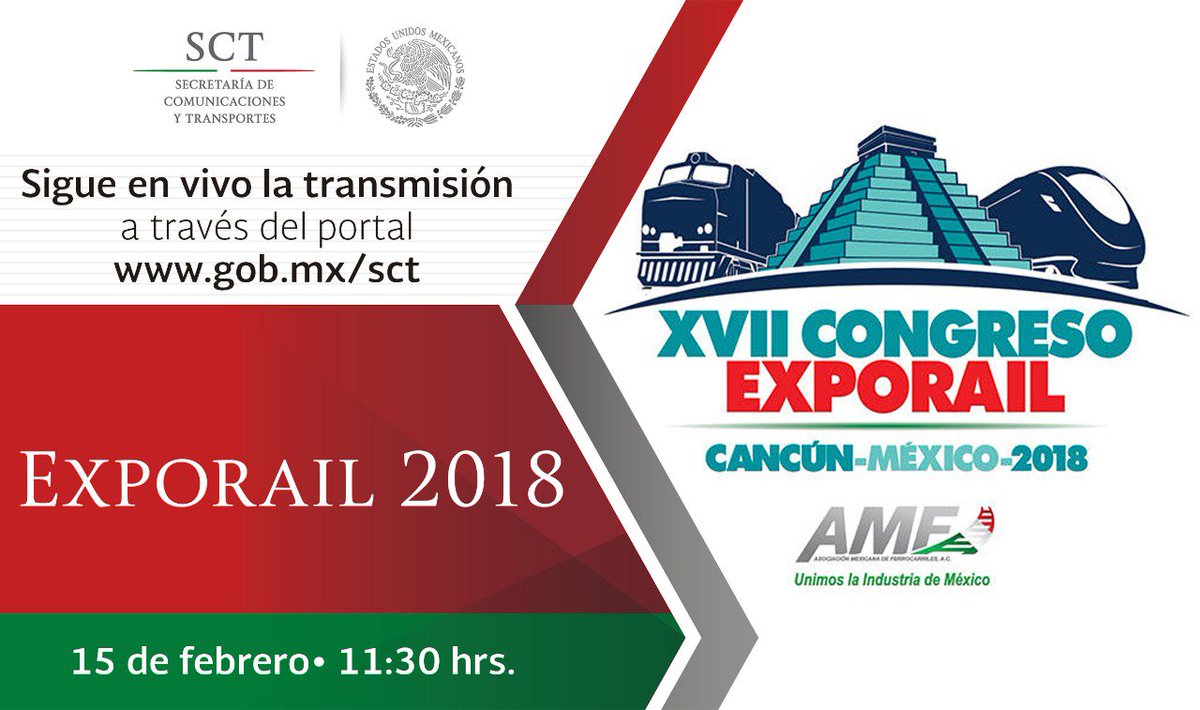 Sigue #ENVIVO la Ceremonia Inaugural de #EXPORAIL2018 a través de nuestro portal: http://www.gob.mx/sct pic.twitter.com/GdhIIbrcHG