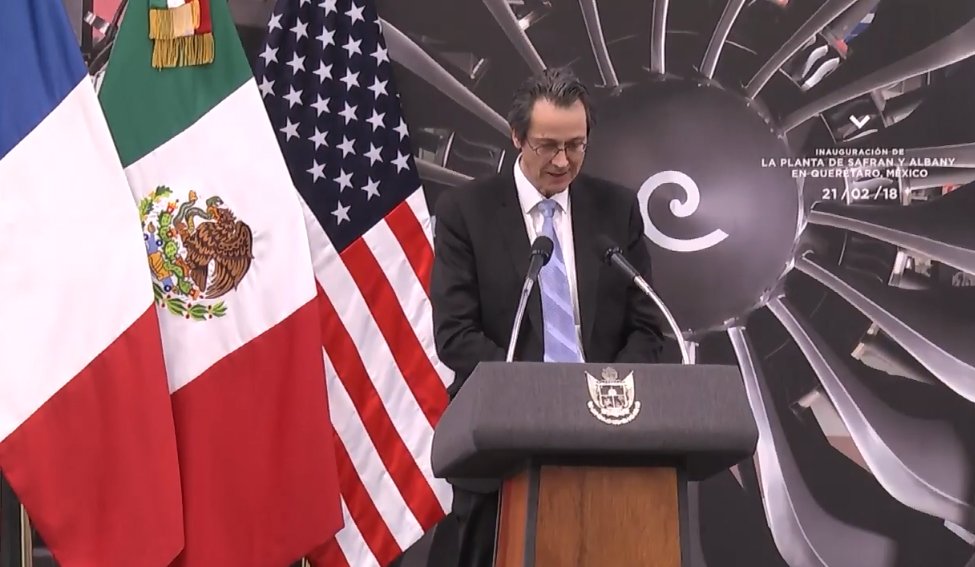 #EnVivo desde #Querétaro | El Sr. Laurent Remuzon, Director General de @SAFRAN Aerospace Composites México, y el Sr. Don Jones, Director General de ALBANY Enginnered Comnposites muestran el éxito de esta asociación para la industria aeronáutica de nuestro país.pic.twitter.com/RVkGBfOAik