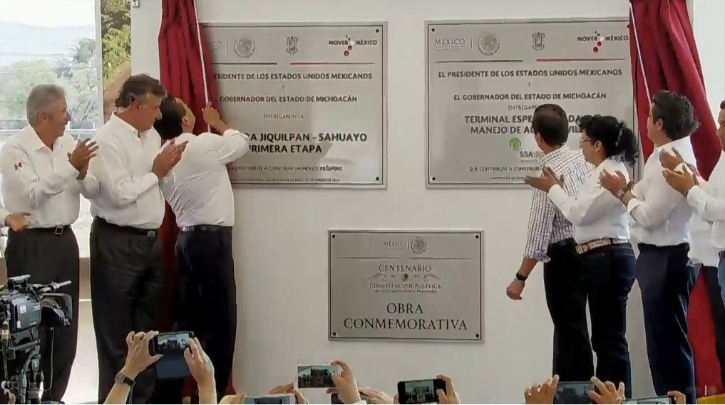 Momento de la develación de la Placa Inaugural de la Entrega de Infraestructura en #Michoacán por parte del Presidente @EPN
