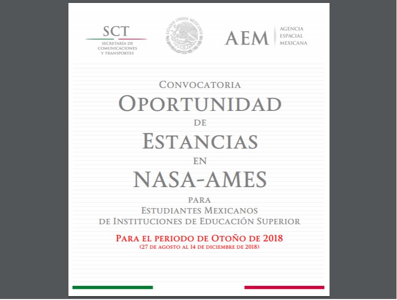 #ComunicadoSCT | Lanza @AEM_mx nueva convocatoria para que estudiantes mexicanos puedan formarse en la @NASA: http://bit.ly/2HXJ0Wa  | 👩‍🚀👨‍🚀pic.twitter.com/R24UxTxxHJ