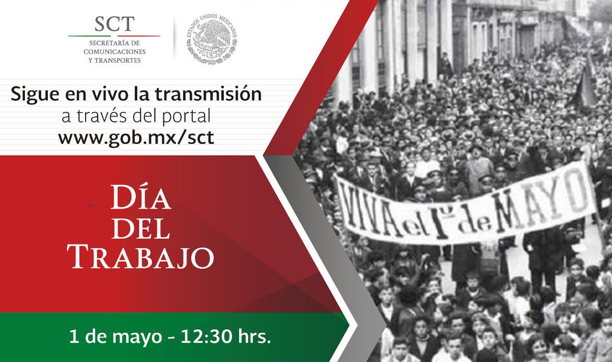 🔴 Sigue la transmisión #ENVIVO de la Conmemoración del #DíaDelTrabajo, a través de nuestro portal: http://www.gob.mx/sct pic.twitter.com/sZCk9H9vXr