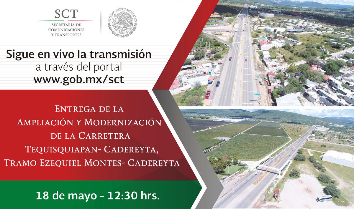 En breve, sé testigo de la Entrega de la Ampliación y Modernización de la Carretera Tequisquiapan- Cadereyta, Tramo Ezequiel Montes- Cadereyta-