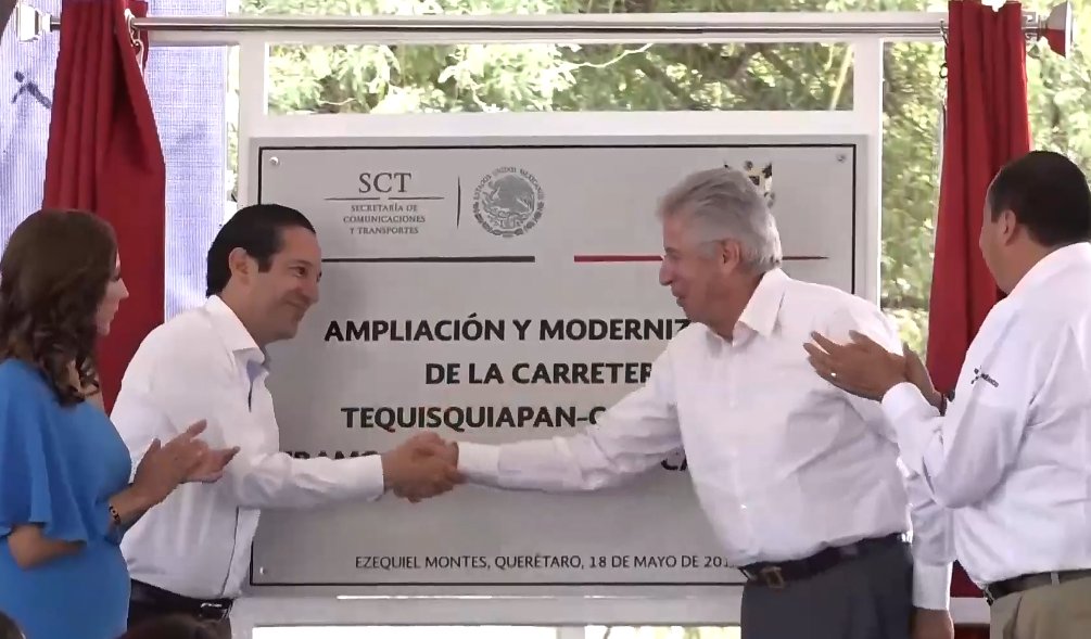 Momento de la develación de la placa inaugural de la Ampliación y Modernización de la Carretera Tequisquiapan- Cadereyta, Tramo Ezequiel Montes- Cadereyta, por parte del Titular de la SCT,