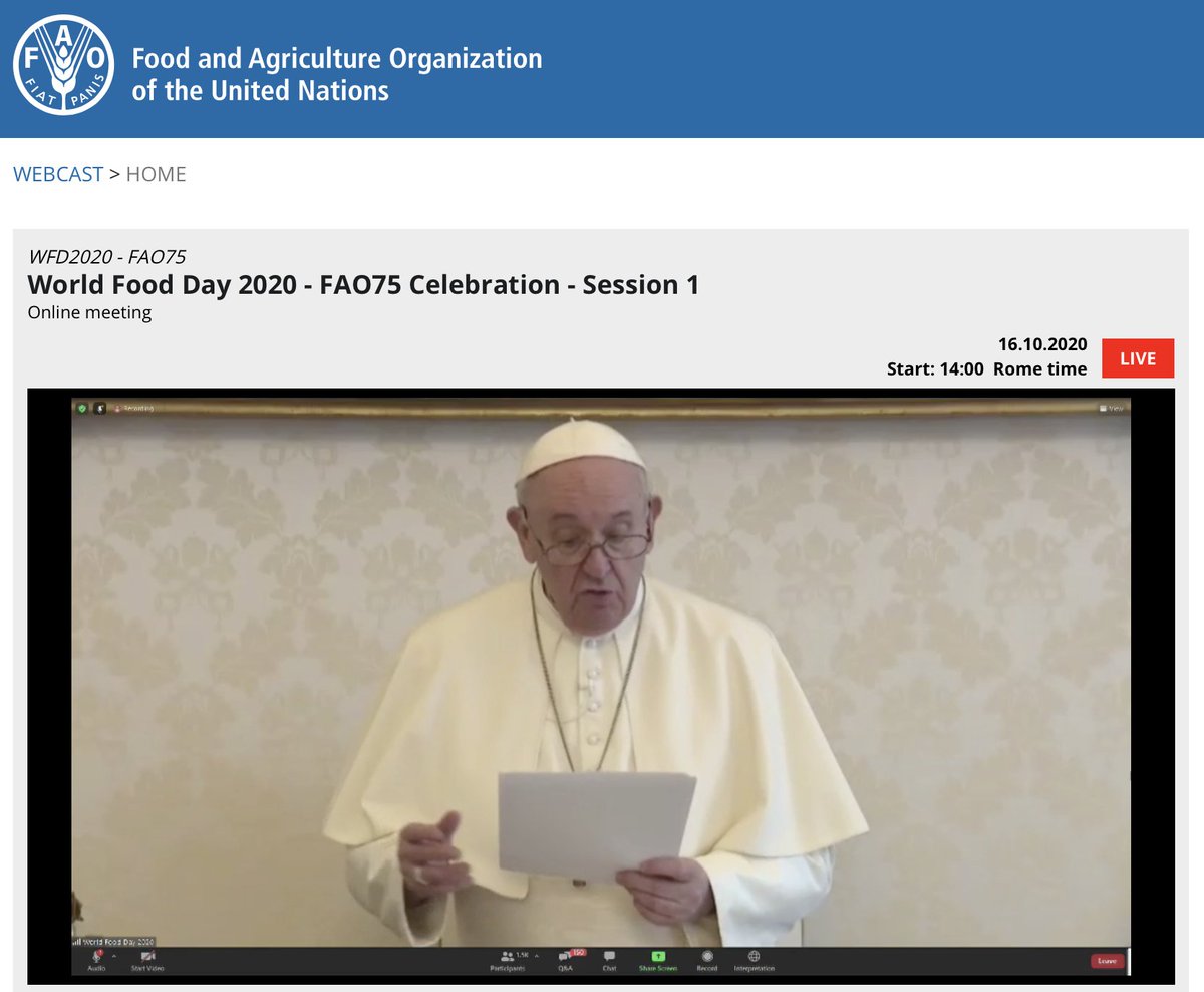 @Pontifex reminds us at @FAO #FAO75 celebrations that we're all responsible to work towards a #foodsystems transformation, including safeguarding natural resources and ending conflicts.
