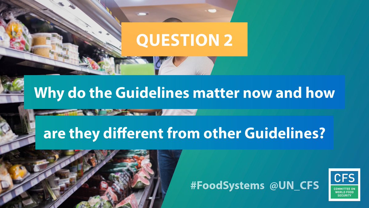 #CFS Twitter Chat For the next 50mins, Amb Hans Hoogeveen and @nancyjaburto will answer any questions around the #VGFSyN. Q2: Why do the Guidelines matter now and how are they different from other Guidelines? Join the conversation by replying to this tweet. pic.twitter.com/w80cjTZzk9