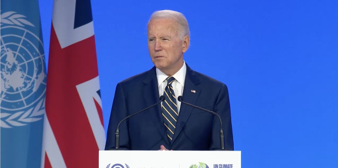 USA 🇺🇸President @POTUS reminds the world 🌏that "the USA isn't only back at the table; they want others to lead by their example"💪The US climate commitment is led by action 🏅 not words🗣️- starting with reducing methane emissions. 'We can do this!' @COP26 #TogetherForOurPlanetpic.twitter.com/RUlR7UHnrK