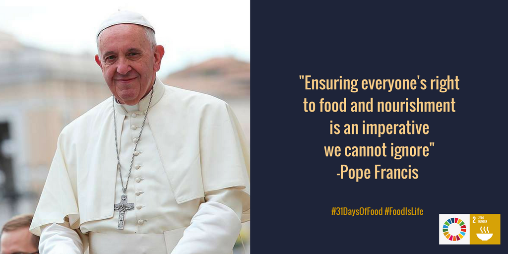 A quote from @Pontifex advocating for the human right to #Food & good #Nutrition on #WorldFoodDay http://bit.ly/2Boof1M #MondayMotivation #31DaysOfFood #FoodIsLifepic.twitter.com/ny1wRTaGqD