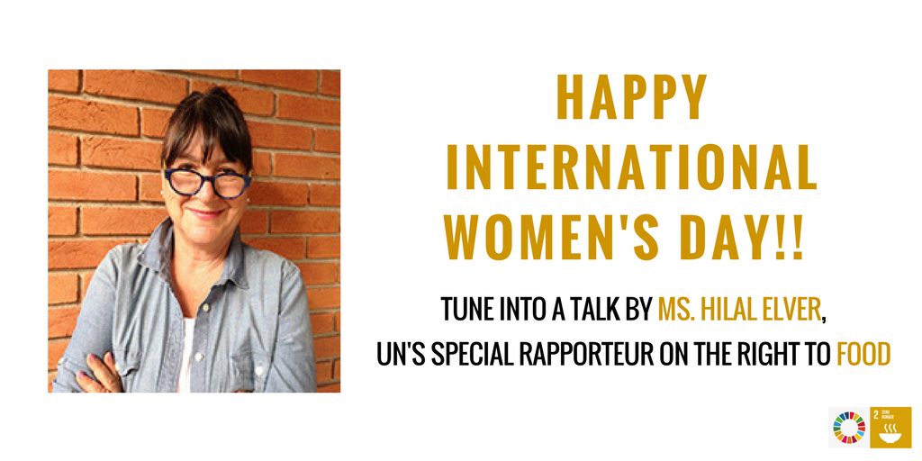 Tune in to 4 p.m. GMT talk with @HilalElver @SUNCSN @GlblCtzn @savechildrenuk on #women’s right to & exclusion from #food: http://bit.ly/2Fsl7EV #FoodIsLife #IWD2018pic.twitter.com/lwLKzIKo3q