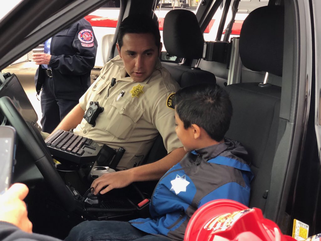 #InYourCommunity: We keep an open dialogue with the people we serve including our little ones. We want them to know they can always come to us for help. @SDSOSanMarcos Deputies had a wonderful time making connections during the @CityofSanMarcos Fire Department open house.pic.twitter.com/AsvcOW11Dz