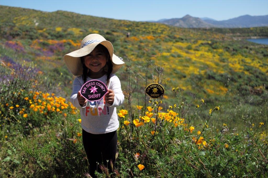 #SuperBloom Smiles and sunshine brought to you by our dear friend Zoey Joy while visiting Diamond Valley Lake in Riverside County. No matter where you're enjoying this #Spring day, stay safe! Visit: http://joinsdsheriff.net #SpringIsHere
