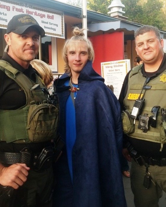 #InYourCommunity @SDSOVista Dep. Ferguson & Sgt. Scroggins had the honor of meeting Zander at the Vista Viking Festival. Zander is battling health issues, but he still made it to the festival from Wisconsin. We were touched by his strength & determination. Stay strong, Zander.